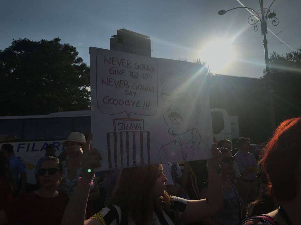 Se scandează, printre altele, “Jandarmeria apără hoţia!”, “Hoţii, hoţii!”, “Demisia!”, “Ieşiti din casă dacă vă pasă!”, “DNA să vină să vă ia!”, “Dragnea, nu uita, România nu e a ta”, “Nu vrem să fim conduşi de hoţi” și “Să vă fie frică, poporul se ridică”.