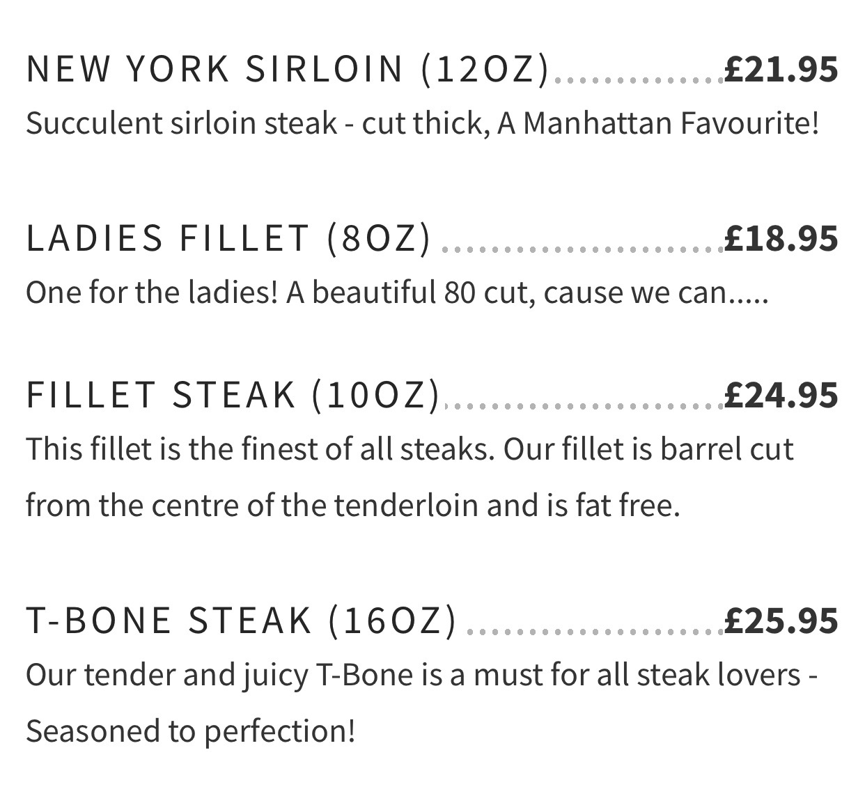 Scandalul a început după ce o bloggeriţă a publicat o imagine a meniului de la Manhattan Bar and Grill, din Liverpool, pe care se putea citi “ladies steaks” (friptură pentru doamne), cum a explicat Vicky M Andrews.