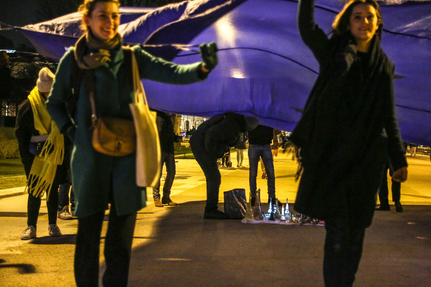 Potrivit paginii de Facebook PLUS Franța, drapelul uriaș al UE a venit prin poștă direct de la Galați. Români, francezi, olandezi, italeni, greci, suedezi, maltezi, s-au reunit in jurul drapelului european pentru a marca determinarea lor de a apăra valorile europene.
