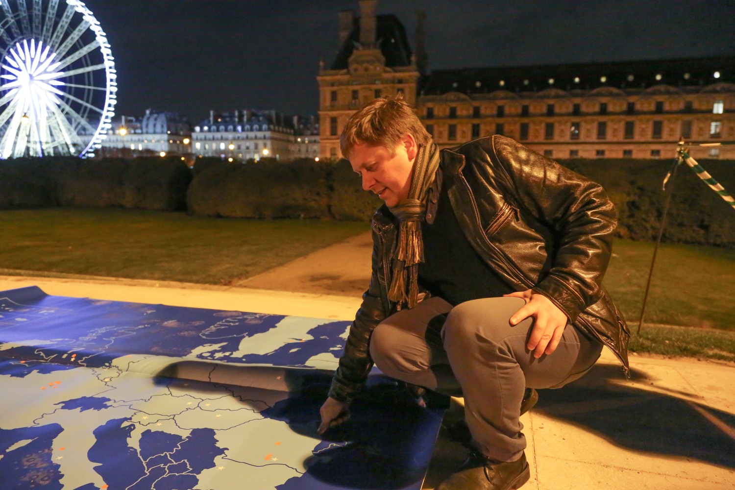 Fotograful Octav Drăgan a surprins în imagini cum un uriaș steag al Uniunii Europene a fost fluturat în Paris la inițiativa românilor, de Ziua Cetățeniei Europene: