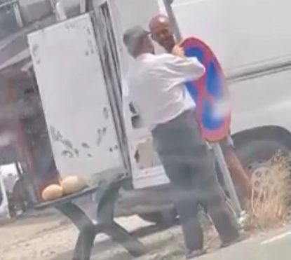 Un vânzător de pepeni a demontat un semn de circulație cu oprirea interzisă, supărat că nu oprește nimeni să-i cumpere marfa