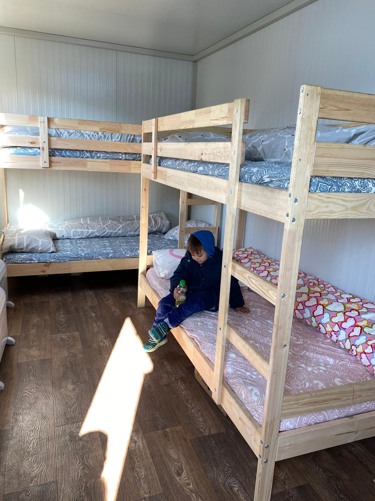 Casa modulară este mobilată şi încălzită cu ajutorul unor convectoare electrice, oferind celor şase copii ai familiei confortul necesar studiului.