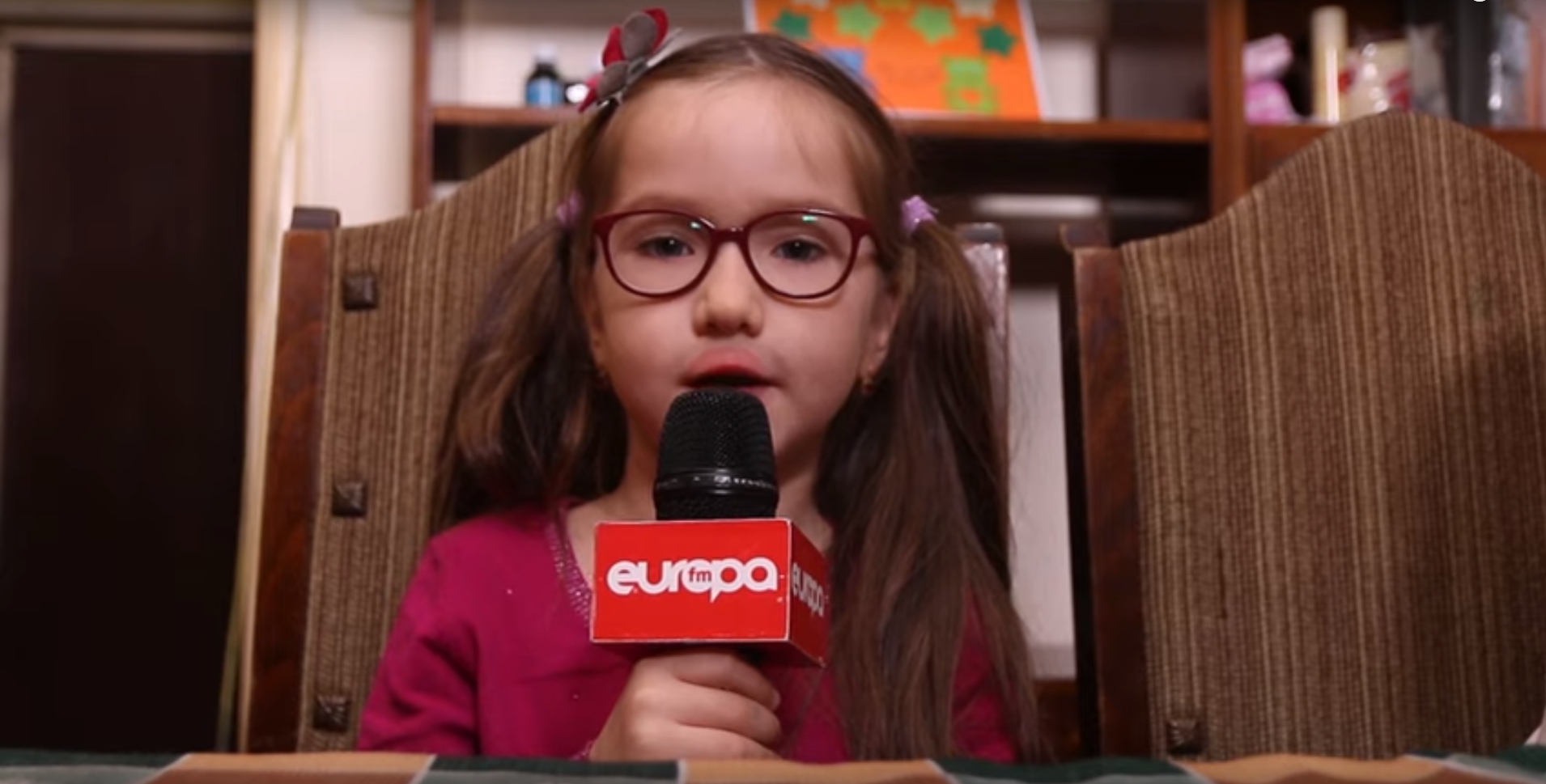 “Eu am auzit că îţi place să dansezi, să pictezi… Ce îți place cel mai mult? – Să cânt. – Ce îţi place să cânţi tu cel mai mult? – Colinde. – Aha… deci să cânți, să dansezi, să desenezi… Am văzut niște desene frumoase. Ale cui sunt? – Ale mele. Exersăm să îmi iasă Zână Toamna că trebuia să fac la școală, când era toamna”, spune Alicia.