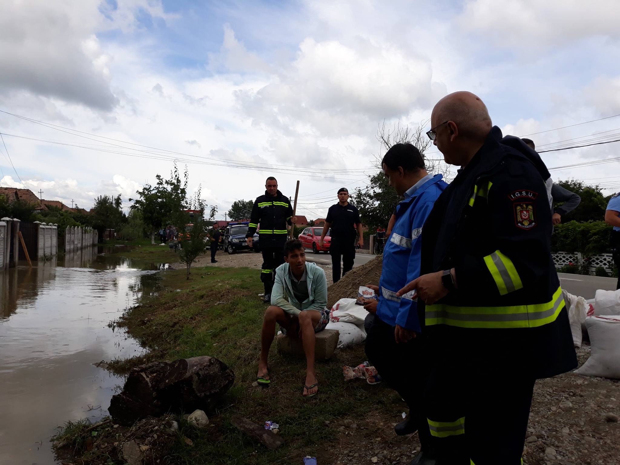 141 de persoane au fost evacuate din zonele afectate de inundaţii. Peste 100 de pompieri intervin pentru evacuarea apei, a persoanelor şi bunurilor şi ridicarea unor diguri de protecţie.