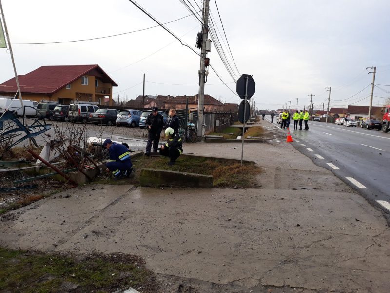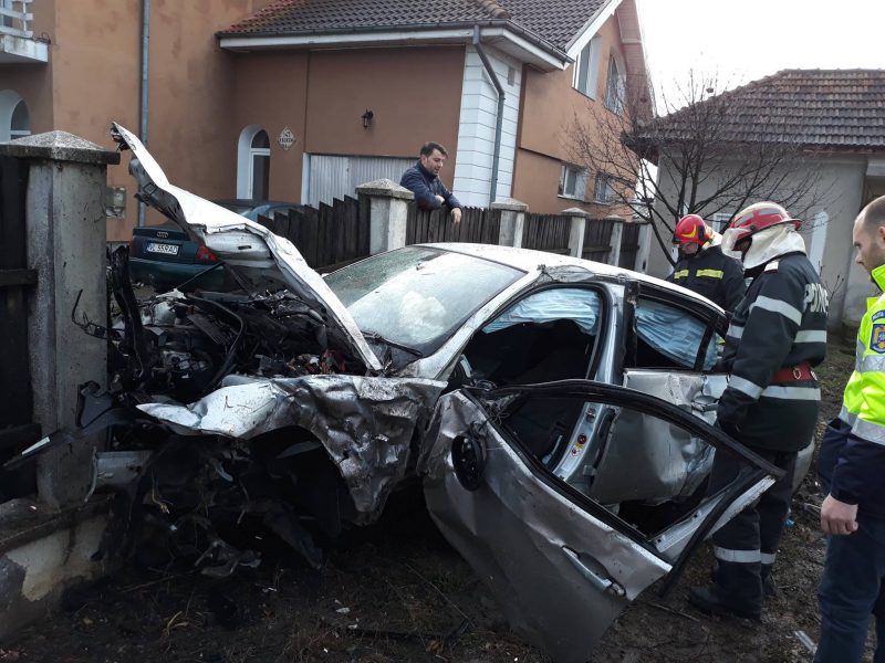 Maşina s-a strivit de un gard de beton, transmite corespondentul Europa FM, Nicoleta Ene.