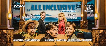 Cel mai relaxant și revigorant “All Inclusive” se află doar la un bilet distanță și se savurează confortabil din sala de teatru. Sunteți invitați la o superbă comedie maraton, pe un text de Alexandru Popa, despre ce avem și nu vedem și despre ce căutăm, deși avem deja. Totul bine dozat, ȋntr-o piesă cuceritor de amuzantă, ȋn care fiecare pare idealul ȋmplinirii celuilalt. Medeea Marinescu, Marius Manole, Mirela Oprișor, Vlad Zamfirescu și Diana Roman dezvăluie cu vervă și haz cum perfecțiunea poate face tandem cu nefericirea și imprefecțiunea poate fi calea cea mai scurtă spre ȋmplinire prin acceptare.