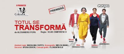 “Totul se transformă” este mixul perfect între distribuţia excelentă, regia bine pusă la punct şi textul autentic, actual şi ofertant al lui Alex Popa. Rezultă un spectacolul copleşitor de amuzant şi periculos de inteligent, cu o esenţă comică ce derivă din jocul fascinant al contrastelor într-o situaţie de criză.