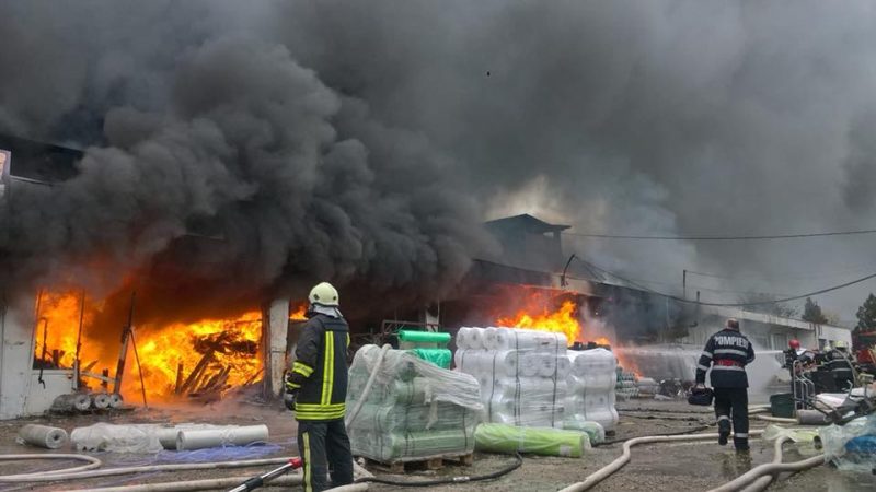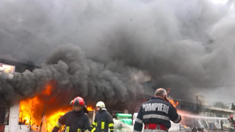 Pentru lichidarea incendiului, care s-a manifestat cu degajări mari de fum, la faţa locului pompierii au intervinit cu şapte autospeciale de stingere şi o cisternă cu apă, anunță Inspectoratul General pentru Situaţii de Urgenţă.