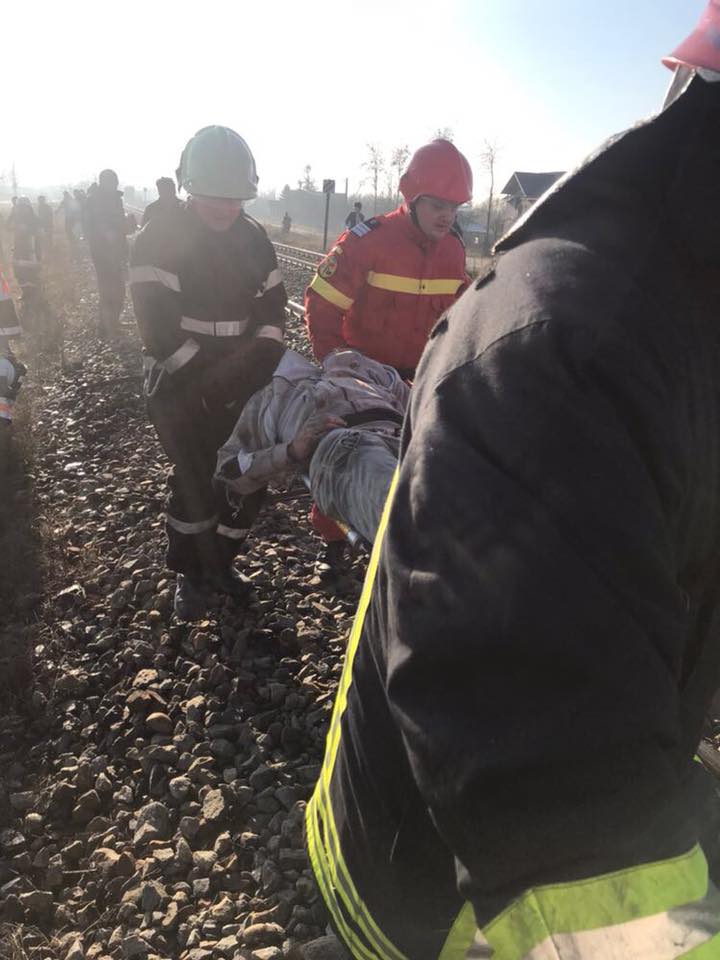 Una din persoanele aflate în autoturism a fost aruncată pe calea ferată în momentul impactului.
