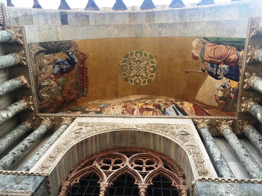 Prima biserică a ars. Au făcut a doua biserică în secolul al X-lea. Iar aceasta, cea de-a treia biserică, a fost terminată în 1094. Acum, moaştele Sfântului Marcu se găsesc în altar.