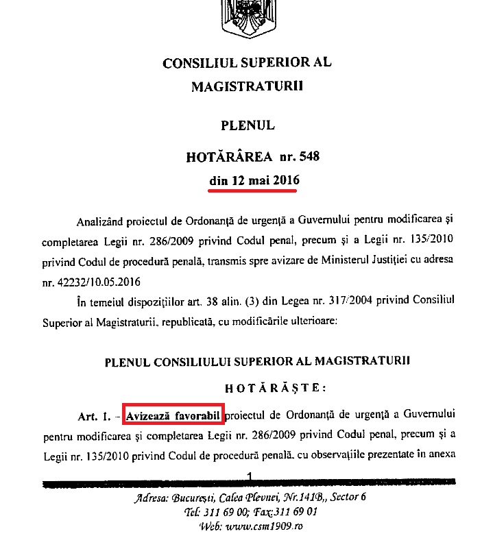 Foto: Avizul Consiliului Superior al Magistraturii pentru Ordonanța de Urgență 18/2016, mai 2016/ Sursa: Camera Deputaților