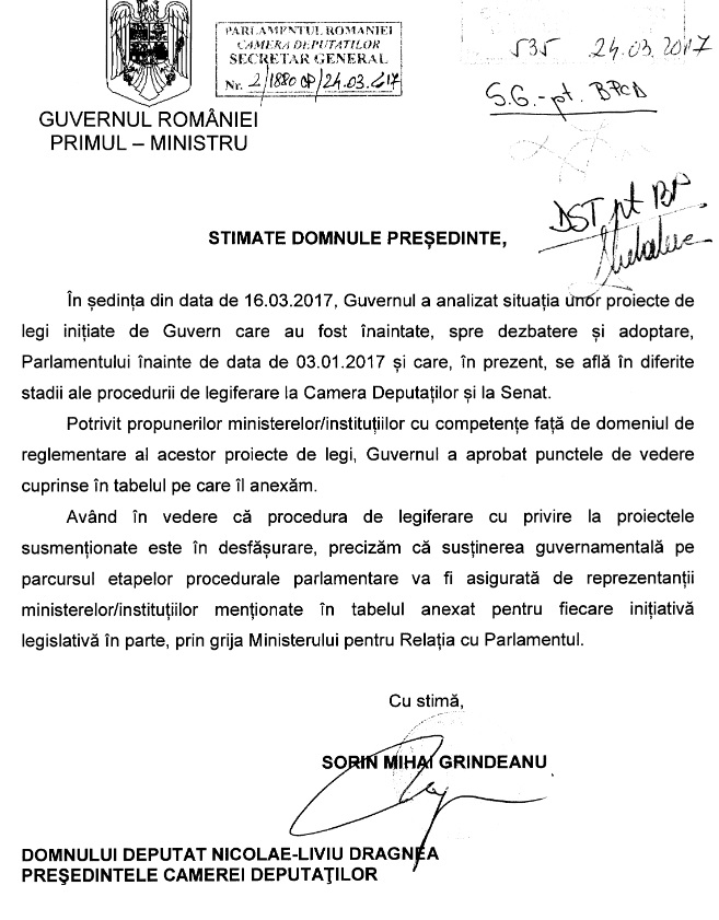 Foto: Punctul de vedere al Guvernului Sorin Grindeanu, martie 2016/ Sursa: Camera Deputaților