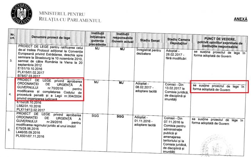 Foto: Punctul de vedere al Guvernului Sorin Grindeanu, martie 2016/ Sursa: Camera Deputaților