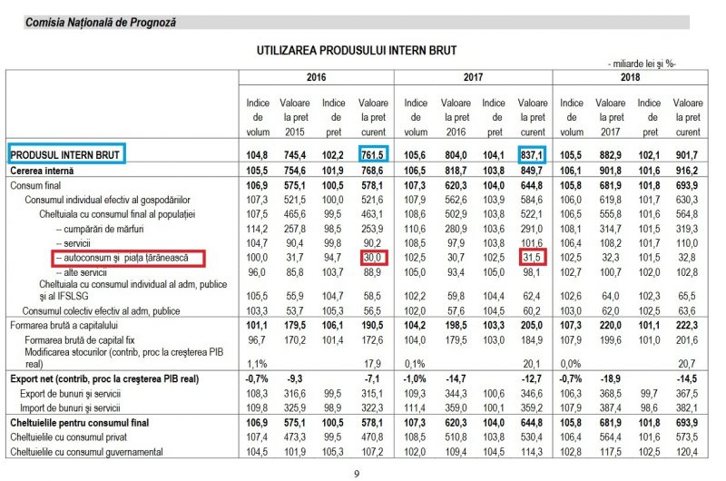 Datele actualizate ale Comisiei Naționale de Prognoză arată că autoconsumul și piața țărănească laolaltă au însemnat anul trecut 3,9% din PIB, iar pentru anul acesta estimarea e de doar 3,8%. De cinci ori mai puțin decât scrie Varujan Vosganian.