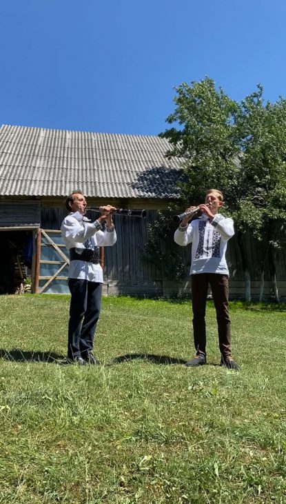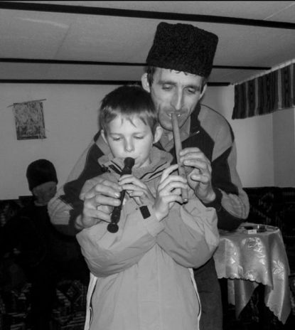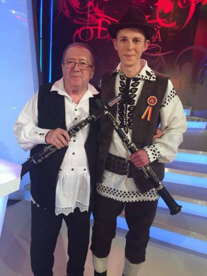 Ciprian și tatăl său, cântând la fluier. Sursă foto: Facebook/Toiut Ciprian Virciu