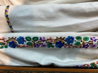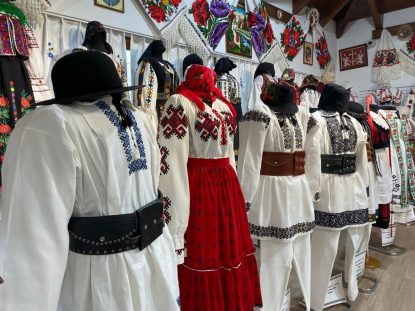 “Avem cămăși femeiești de la 1900, costume bărbătești foarte vechi. Le-am adunat, în special din zonă, din Țara Năsăudului. Foarte multe am moștenite din familie, dar am achiziționat și din zonă ca să putem să arătăm istoria costumului popular și evoluția lui, pentru că în funcție de apariția materiei prime, femeile și-au încărcat mult mai mult costumele”, a explicat Virginia Linul.