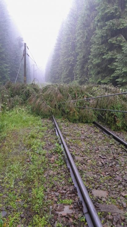 Zeci de arbori au avariat liniile de contact din cauza furtunilor puternice în aceste zone. Din această cauză, mai multe trenuri au fost oprite temporar, în stațiile de pe traseu, până la finalizarea reparațiilor.