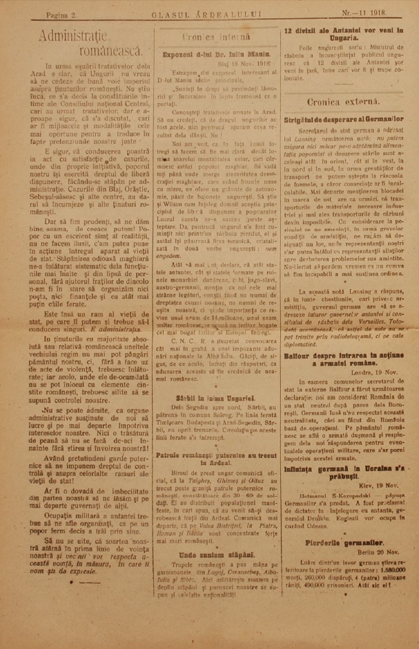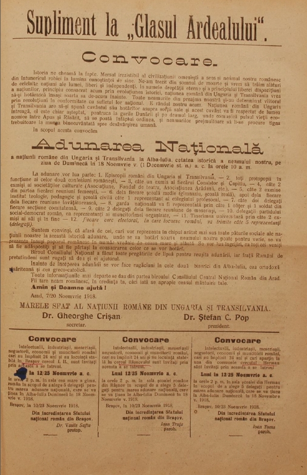Glasul Ardealului a fost ziarul care i-a informat și mobilizat pe toții românii în mișcare pentru Unire și în activitatea de organizare a Marii Adunări Naţionale de la Alba Iulia.