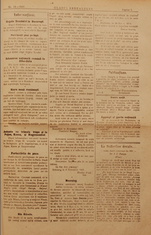 Ziarul a publicat o serie de documente emise de reprezentanții națiunii române din Transilvania, precum manifestul “Către popoarele lumii”.