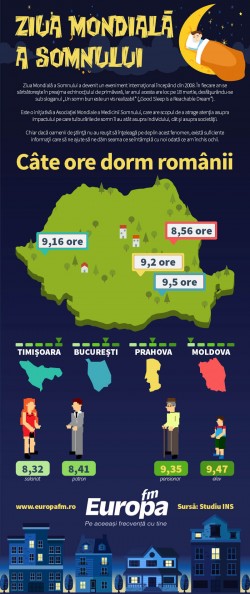 Ziua Mondială a Somnului: Câte ore dorm românii – INFOGRAFIC